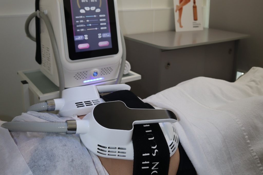 EMS: ondas electromagnéticas que generan contracción muscular, trabajando a nivel profundo para tonificar.