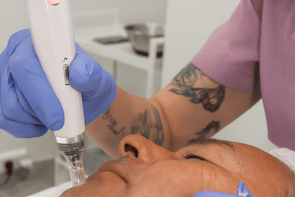 cuando la combinación llega a las capas más profundas de la dermis se realiza un masaje para repartirla por toda la cara de manera